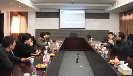 圖為來訪領(lǐng)導(dǎo)聽取虞董介紹我公司情況