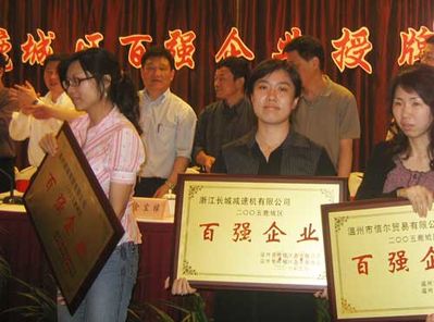 2006年5月19日下午,在由鹿城區(qū)企業(yè)聯(lián)合會和企業(yè)家協(xié)會召開的五屆四次會員大會上,舉行了2005鹿城區(qū)百強企業(yè)授牌儀式,浙江長城減速機等企業(yè)接受了這一榮譽。