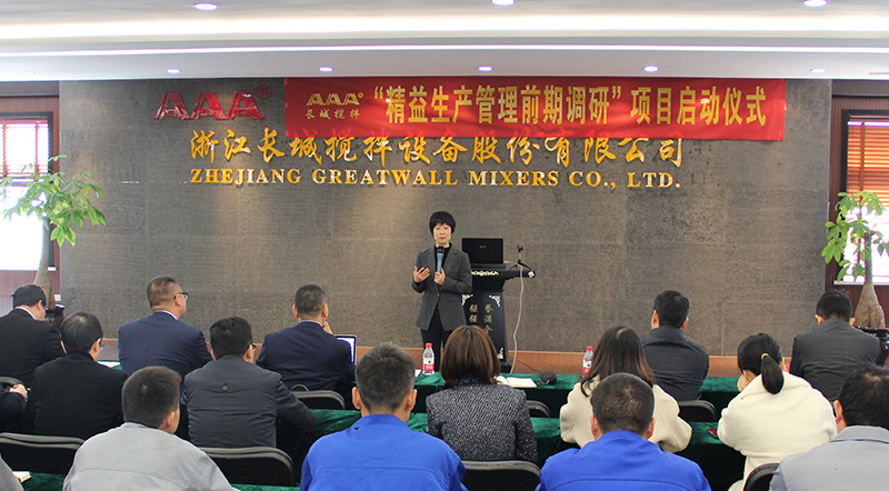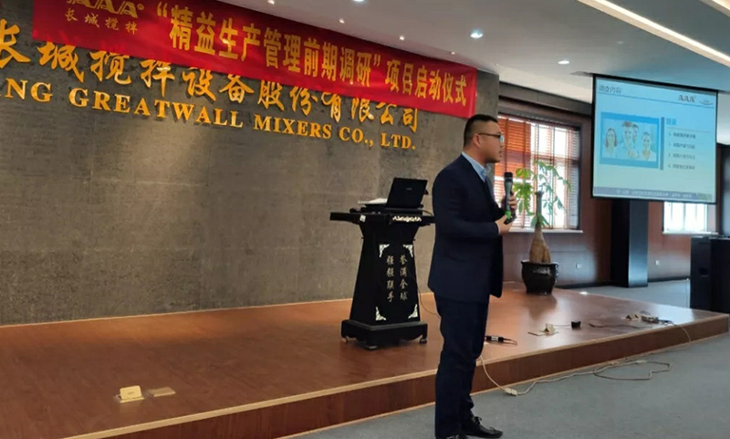 隨后,精益老師從三個方面分享了項目推進(jìn)的要求和期望;首先,他通過事前調(diào)查內(nèi)容的說明,強(qiáng)調(diào)了項目調(diào)查階段的重要性,圍繞PQCDSM各個方面對企業(yè)進(jìn)行全面的診斷,希望大家能夠配合老師的工作,提供最真實的現(xiàn)狀和數(shù)據(jù);其次他結(jié)合長城公司的企業(yè)文化與精益生產(chǎn)核心的指標(biāo)表達(dá)了對項目的期望,希望各個部門發(fā)揮自己的智慧,積極參與項目的推進(jìn),達(dá)成我們的目標(biāo);最后,繆老師從理解力、學(xué)習(xí)力、行動力三個維度分享他對執(zhí)行力的看法,希望長城攪拌的管理團(tuán)隊是具備真正執(zhí)行力的團(tuán)隊,精益生產(chǎn)轉(zhuǎn)型成功與否核心在于團(tuán)隊的努力、成長,精益生產(chǎn)推進(jìn)的過程也是造物育人的過程。