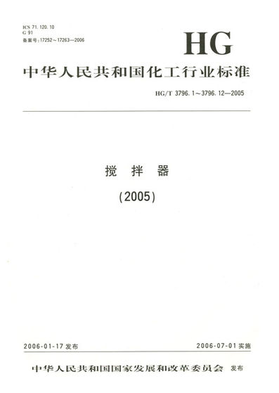 由我公司負責起草的《攪拌器》(HG/T 3796.1~3796.12-2005)標準族已正式發(fā)布實施并出版