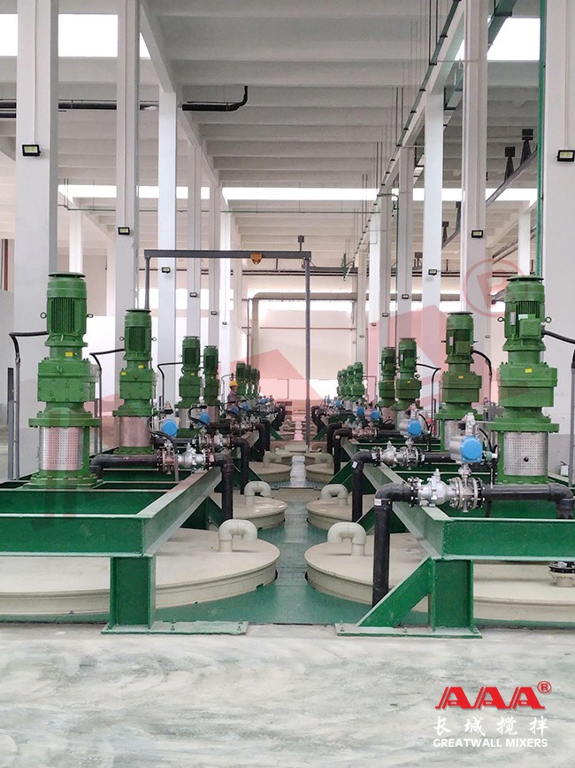濕法冶煉是利用浸出劑將礦石、精礦、焙砂及其他物料中有價(jià)金屬組分或待提取組分溶解在溶液中或以新的固相析出。一般要求攪拌設(shè)備具有耐腐蝕和耐磨損的功能,有些浸取過程還需要通入氧氣,我們針對(duì)浸出過程開發(fā)了適合氣液固三相傳熱、傳質(zhì)和反應(yīng)的攪拌設(shè)備。
